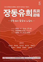 <장동유희(長洞遊嘻)_장동에서 즐겁게 노닐다> - 전시기간: 11. 3. ~ 11. 27. - 전시내용: 지역 명소인 장동과 계족산의 아름다움을 다각적으로 표현한 작품 전시 - 참여작가: 김소연, 박대규, 박수경, 복진오, 백윤오, 유하나, 유혜정, 조동진, 안현준(큐레이터), 허나영(평론) |
