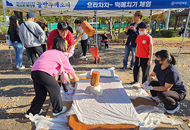 풍년이로세 홀테 탈곡 체험 추억의 볏짚 달걀 꾸러미 체험 들말두레 팬시우드 체험 으라챠챠~ 떡메치기 체험